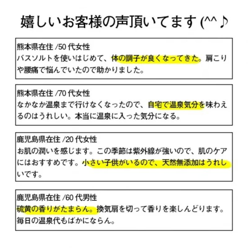 ◇より実感されたい方は、多めにバスソルトを入れ30分程度入浴してください。